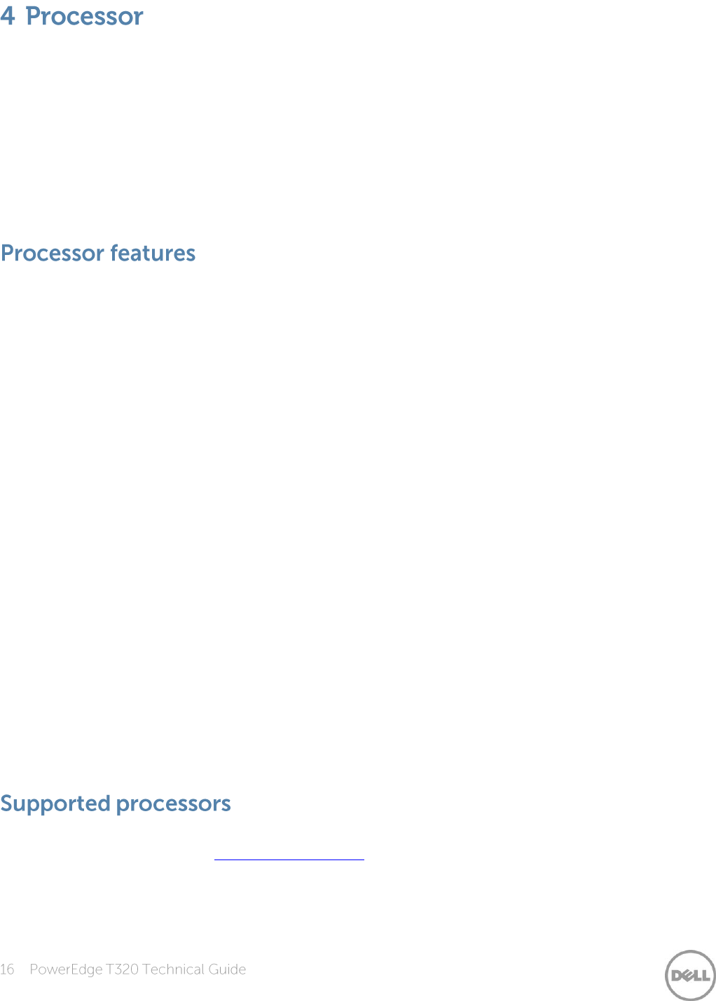 Table 7 lists the Intel Xeon processors supported by the PowerEdge T320. For the latest information